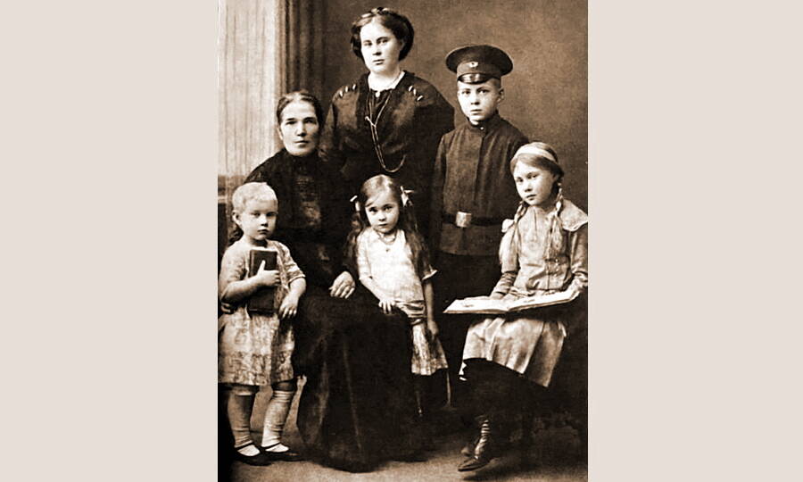 10-летний ученик реального училища Аркадий Голиков с матерью, тёткой и сёстрами